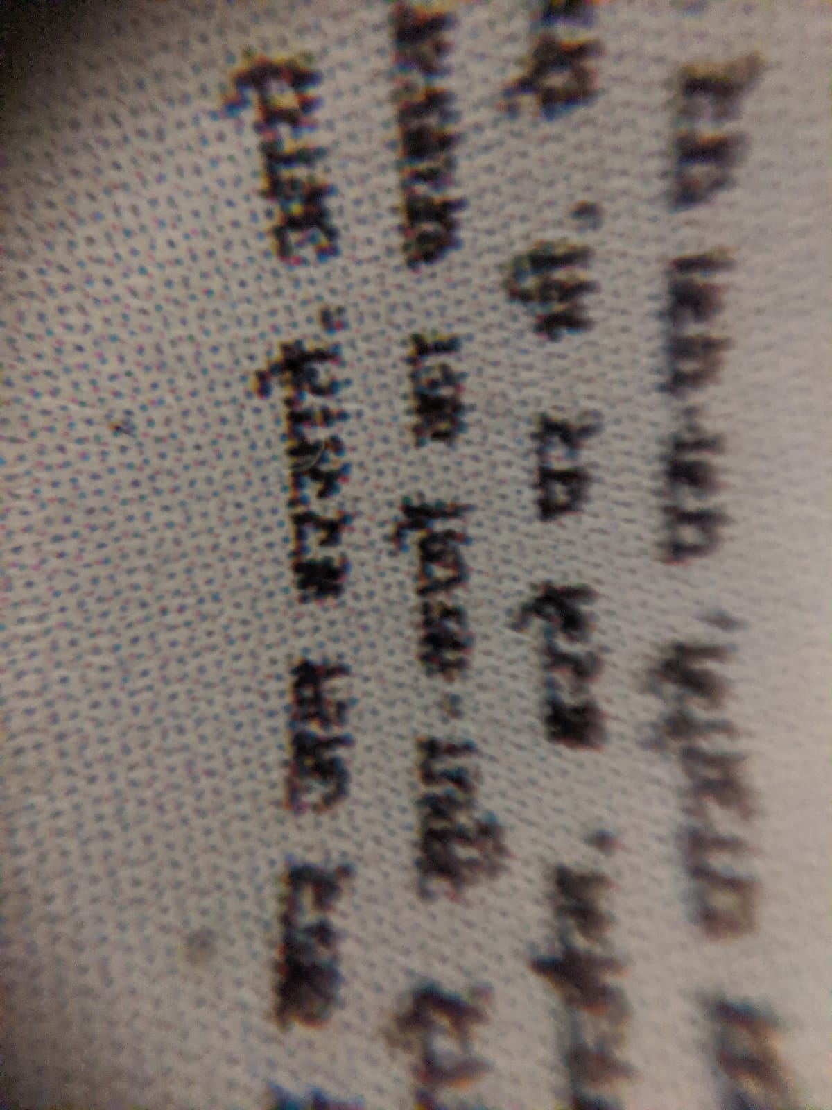 Just to show that there’s not much further useful detail available on the page, here are close-up pictures (taken with a clip-on 25x macro lens attached to a phone) that show the page texture (of course the focus is narrow so the images aren’t very useful in their current state):