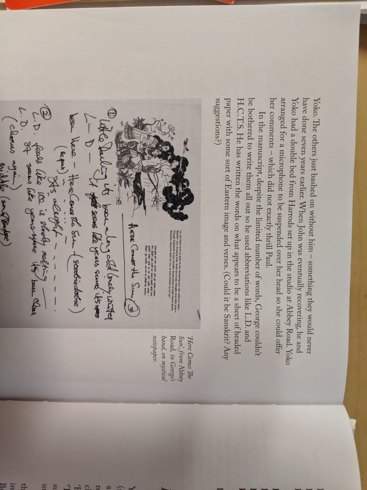 which apparently is the sheet of paper on which George Harrison originally wrote down the lyrics for “Here Comes The Sun”, a song by The Beatles.