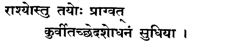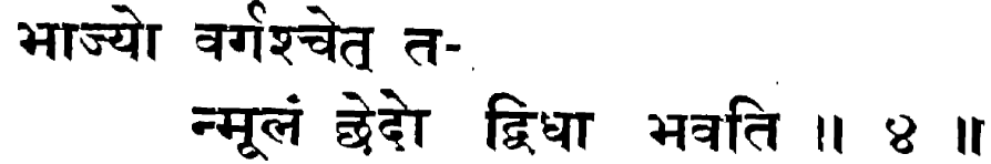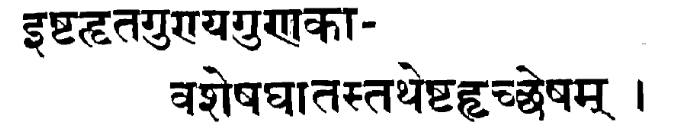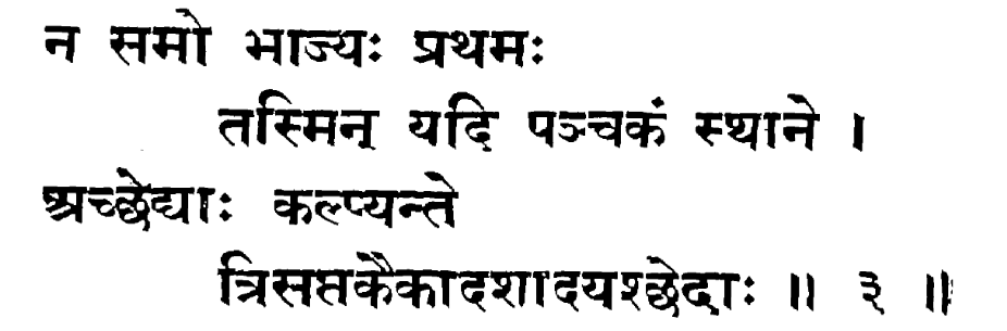- pūrvaghnaḥ tulyānāṃ paraḥ, pṛthak, te anyaharanighnāḥ = the prior products in front of the equal [divisors], and separately, and they [the equal divisors] multiplied by the other (equal?) divisors.