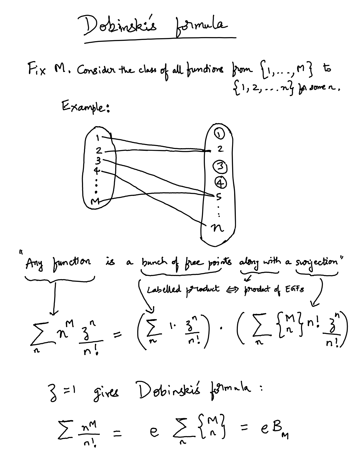 Now, any such function is the labelled product of a surjection and set of “dummy” elements (in the co-domain but not in the range). So we have