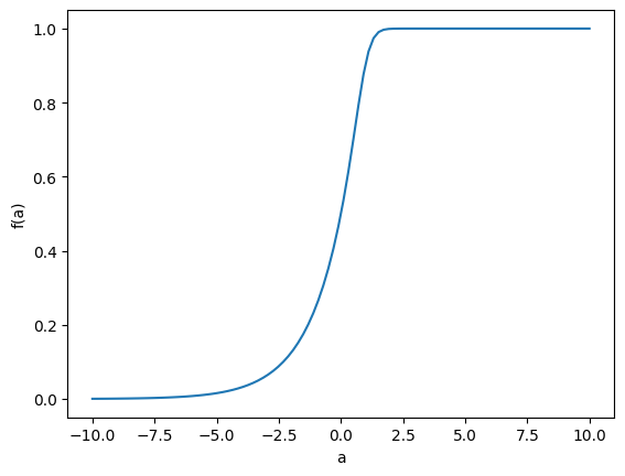 # prompt: Plot f as a function of a, from a = -10 to a = 10
